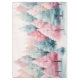 A mint and pink watercolor Winter scene with a beautiful fir trees forest!