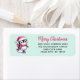 These custom mint green and pink Christmas return address labels feature the "Merry Christmas" saying in script font and a cute penguin ice skater in pink apparel. The template makes it easy to type your address.