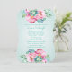 Pink and green watercolor floral bouquet with succulents on a mint green background with vintage halftone texture effect. This romantic invitation can be used for bridal showers, baby showers, birthday parties, anniversary parties, or tea parties. With room for additional information on the back.