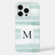 Mint Aqua Blue White Stripes Monogram Case-Mate iPhone Case