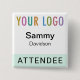 Easily personalise our square attendee name badge with your event logo, attendee name, or other custom text. It attaches with a safety pin back. Designed in mint green and other colours (all colours are customisable). Our square buttons are 2 inch x 2 inch. Made in USA. No minimum order quantity and no setup fee.
