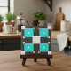 Mint Black & White Chequered Geometric Pattern Tile