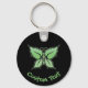 Butterfly icon composed of green mint leaves. Custom background colour. Custom text on both sides.