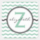 Mint green and charcoal grey chevron pattern with name and monogram.