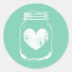 Mint green rustic country chic mason jar wedding stickers Vintage design for DIY summer garden wedding party / cute bridal shower. Pretty design with faded love symbol. Customisable background colour. Personalizable with name or monogram of bride and groom.