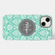 Mint Damask Grey Monogram Name Case-Mate iPhone Case