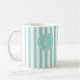 Mint French Beach Stripe Personalised Monogram Coffee Mug
