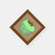 Paper napkins in a Cupcake with green mint frosting topped with chocolate curls, in a decorative, green fractal cupcake wrapper, on a brown and beige swirl patterned background