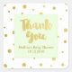 Baby shower thank you favour tag sticker in light pastel mint green and white with gold colour confetti and handwritten style text. The perfect way to decorate your baby shower favours and thank your guests for being a part of your special day.