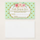 Cute baby shower candy guessing game cards in mint and gold dots pattern with gold details and pink watercolor vintage flowers.