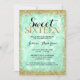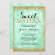 Mint Gold Faux Glitter Lights Sweet 16 Birthday Invitation