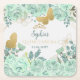 Mint Gold Floral Butterfly Quinceañera Square Paper Coaster