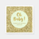 Customisable napkins for baby shower in light pastel mint green with gold sparkle confetti and hand lettered style text reading oh baby.