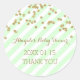 Baby shower thank you favour tag sticker in light pastel mint green and white stripes pattern with gold colour confetti and handwritten style text. Customisable with your own text. The perfect way to decorate your baby shower favours and thank your guests for being a part of your special day.