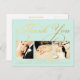 Gorgeous faux gold foil typography on the front of this designer postcard which you can upload into with 3 of your own engagement/wedding photo portraits. Easily and quickly personalise this designer professionally printed thank you postcard here and now by just typing over the example text and adding your own photographs. Elegant, chic, simple and classy gold script/cursive typography.