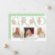 Class of 2024, Mint green GRAD typography pink roses photo graduation announcement It features the word "GRAD" in a decorative relief font in mint green, bouquets of pink roses and three photos. The backside features a pattern of white graduation caps on green.