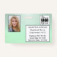 This employee identification photo badge is perfect for any business, corporate company, nursing home, or any other company needing to increase security. It features a faux printed girly mint green and silver glitter gradient background with a customisable picture photograph, a place for your logo, a text box with all the employee information, and a personalizable barcode on the back. It's elegant, simple, modern, and chic.
