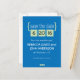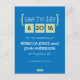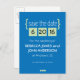 This simple mint green and aqua blue save the date postcard features a modern design. The background is solid aqua blue with three mint green squares for the wedding date. Customise the text to fit your needs.