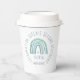 Celebrate your little one's birthday with this cute boho rainbow illustration with a cute heart in mint-green and blue tones with a customisable name.