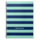Bold mint green and navy blue stripes feature your name and the year in a simple light green sans serif font on a dark blue stripe near the bottom. Personalize it with your custom text in the sidebar.