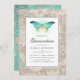 Vintage quinceanera invitation featuring a glowing butterfly and damask patterns.