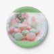 Mint green and pink macaroons on party paper plates perfect for spring and summer get togethers