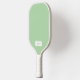 Personalised Custom-Designed Pickleball Paddle with mint green and white rectangle "sticker" emblem printed with your name and optional phone number contact information. Change the font and background colour to your favourites and never lose your spot at the court or confuse your paddle with anyone else's again! You will be the envy of the tournament with this unique paddle design.