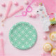Mint Green and White Geometric Pattern Circles Paper Plate