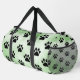 Mint Green Black Paw Print monogram personalise Duffle Bag