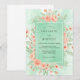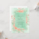 This botanical design features a refreshing mint green backdrop accented by delicate peach watercolor roses and lush sage leaves. The airy and romantic aesthetic highlights soft floral clusters and elegant greenery, creating a peaceful atmosphere. Ideal for a seasonal event, the palette combines warm pastel tones with cool, natural hues for a timeless look.
