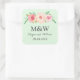 Mint Green Blush Pink Floral Monogram Wedding Square Sticker