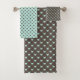 MINT GREEN & BROWN HEART PATTERNS BATH TOWEL SET