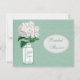 Elegant mint green Bridal Shower invitations with a cute white and green glass Ball mason jar and pretty white hydrangea vintage flower illustration on a stylish hot and trendy mint green shabby chic printed mint green burlap background. On the reverse of the invites is a glamourous printed white pearls and lace mat with green text for you to personalise with your event details. Classy, trendy, fashionable, modern invites perfect for spring, summer, fall / autumn and winter showers. New wedding colour trends! I have matching products in my store. All of the text can be easily customised to meet your needs and you can change the font style, colour and size of font if you desire. If you need any assistance customising your product please contact me through my store and I will be happy to help. Pearl mat by ©Hazel Kinvig-Paul www.design-a-dream.co.