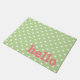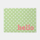 Cute white polka dots on a background of soft Mint Green. Personalise with your choice of greeting in Coral Pink.