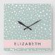 Mint Green Dalmatian Dots, Spots, Your Name Square Wall Clock