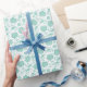 Mint-green Floral Damasks Over White Background Wrapping Paper