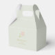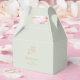 Gorgeous wedding favour box featuring a trendy light mint green background with 'thank you' text in faux gold and whimsical floral rose detail.