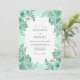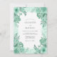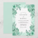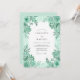 This design features a lush arrangement of mint green roses and delicate foliage. The monochromatic palette creates a clean and fresh aesthetic perfect for a spring or summer event. Intricate watercolor leaves and soft blossoms add a romantic, airy feel to the botanical theme.
