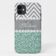 MINT GREEN GLITTER, GRAY CHEVRON, MONOGRAMMED Case-Mate iPhone CASE