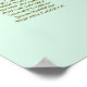 This wedding seating chart includes table assignments for 150 guests at 15 tables. The design is simple yet elegant featuring gold text on a light green or neo mint colored background. The title is written in lacy script calligraphy and there are faux foil frilly floral decorations in the corners. Stylish, chic and sophisticated way to help your guests find their seats at your reception.