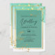 Mint Green Gold Alcohol Ink Abstract Wedding Invitation