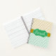 A stylish personalized notebook featuring a mint green and gold chevron pattern. Perfect for school, journaling, planning, and everyday writing. Add your name for a custom gift that stands out with modern color accents and a clean geometric look.