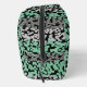 This distinctive digital pixelated vertical stripe pattern brings a contemporary flair to a classic travel toiletry bag. The customisable blend of mint green, grey, and black forms a bold and visually appealing design that is bound to attract attention. With the interplay of two-tone grey and mint green stripes set against a black backdrop, this bag offers a contrast, making it an excellent choice for any traveller looking to make a memorable impression.