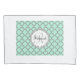 Mint Green Grey Quatrefoil Name Monogrammed Laurel Pillowcase