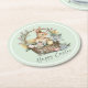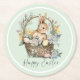 Mint Green Happy Easter Bunny Round Paper Coaster