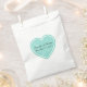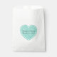 Stylish white paper favour bag with a large mint green heart. Personalise the custom black text for your wedding event. Great for cookies, popcorn, and candy bars.