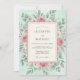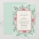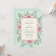 This design features a soft mint green background adorned with a lush arrangement of dusty pink roses and sage eucalyptus foliage. The romantic watercolor aesthetic creates an ethereal atmosphere perfect for a seasonal event. The palette balances pastel tones with delicate botanical details.