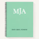 Mint Green Monogram 3 three letter Initials Modern Notebook