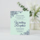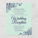 These affordable, budget friendly wedding reception invitations are the perfect choice for class, style, and beauty on a budget. Designed for guests who are invited to the reception but not the ceremony, they feature a beautiful pale mint green coloured background with ornate navy blue faux lace frills in the corners. The typography includes fancy script lettering for a style that is at once simple and elegant. Wonderful way to invite your friends and family to share in your joy on your special day without breaking the bank.