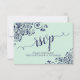 Mint Green & Navy Lace Elegant Calligraphy Wedding RSVP Card